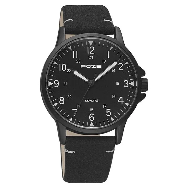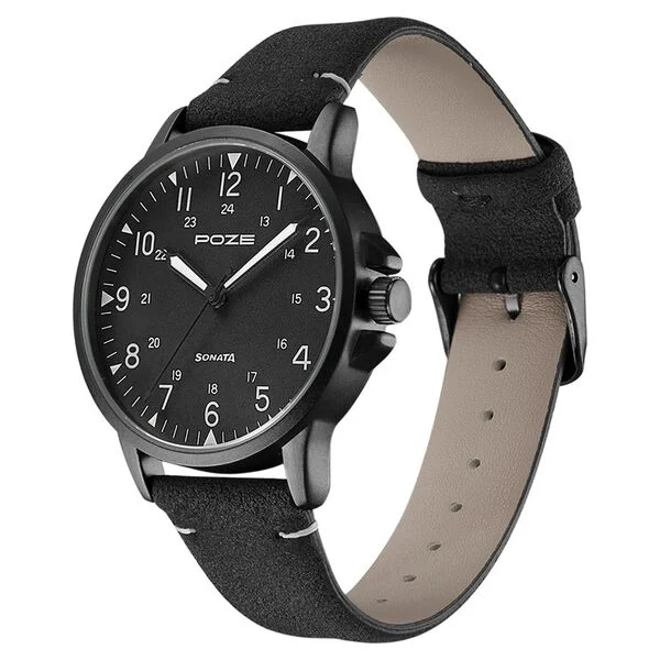 Poze by Sonata Quartz Analog Black Dial PU Leather Strap Watch for Men
