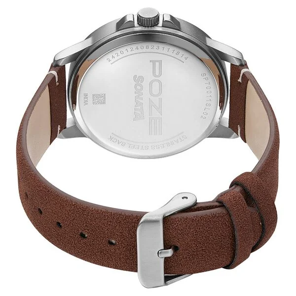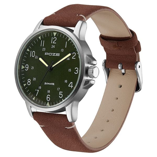 Poze by Sonata Quartz Analog Green Dial PU Leather Strap Watch for Men