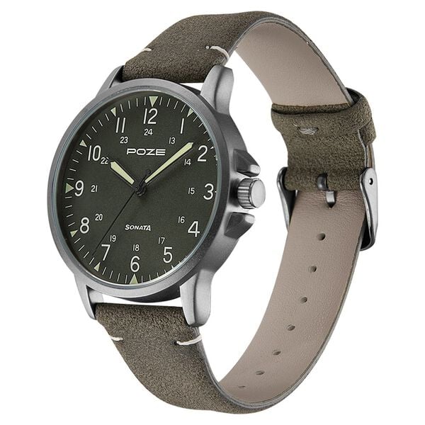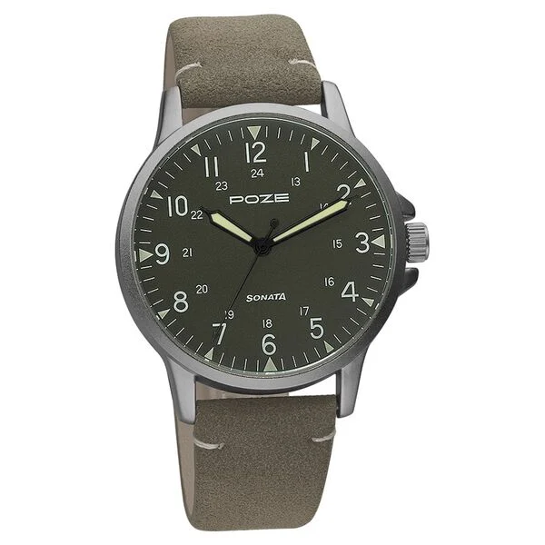 Poze by Sonata Quartz Analog Grey Dial PU Leather Strap Watch for Men