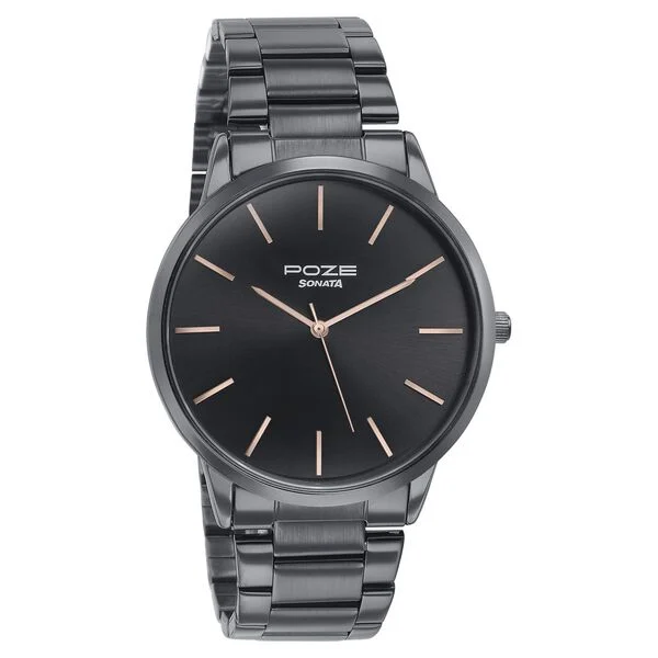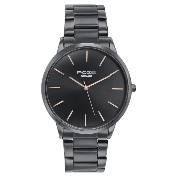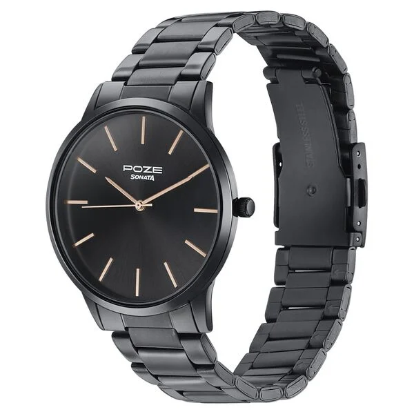 Sonata Poze Quartz Analog Black Dial Black Color Stainless Steel Strap Watch For Men