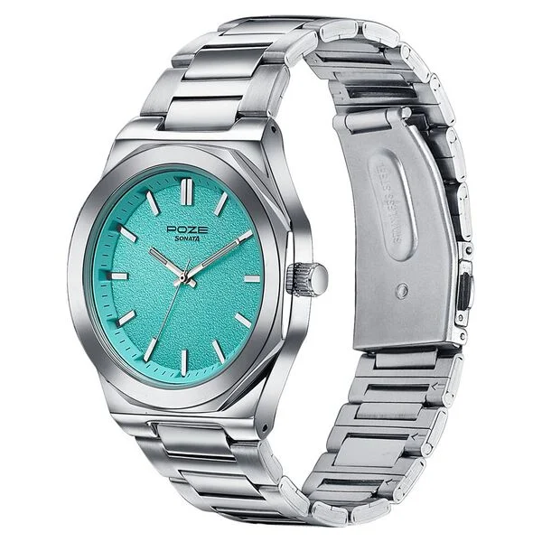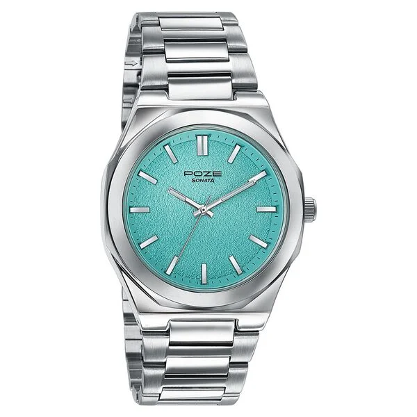 Sonata Poze Quartz Analog Blue Dial Silver Colour Stainless Steel Strap Watch For Men