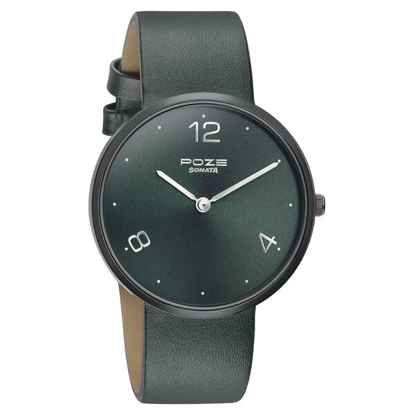 Sonata Poze Quartz Analog Green Dial Leather Strap Watch for Men