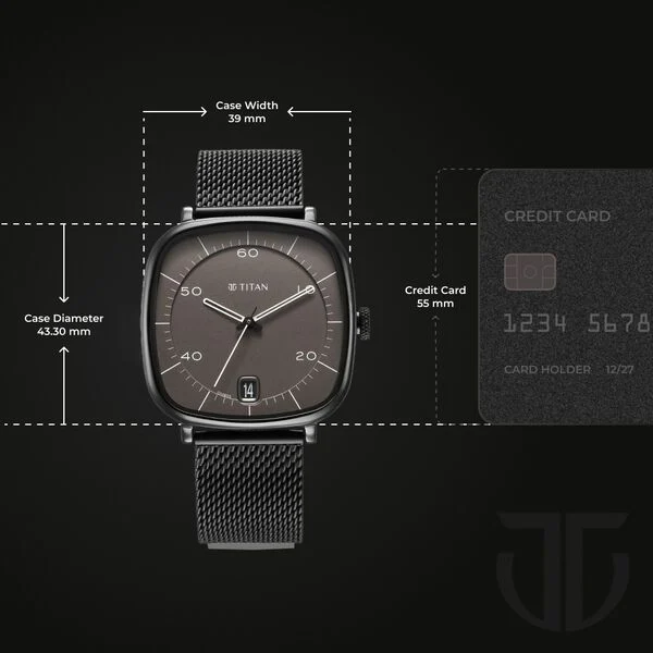 Titan Neo Curve Quartz Analog with Date Anthracite Dial Black Stainless Steel Strap Watch for Men
