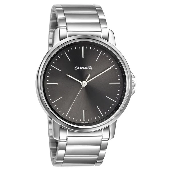 Sonata Quartz Analog Grey Dial Stainless Steel Strap Watch for Men